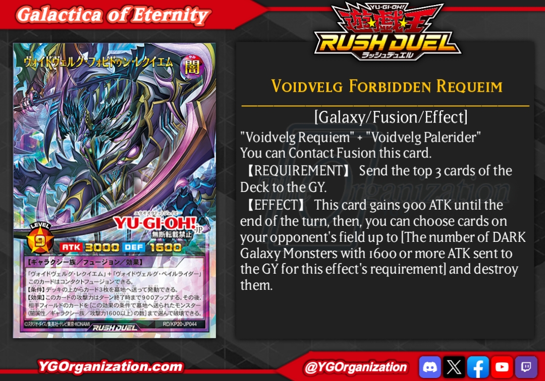 Yugioh YGOrganization | From The Darkest Reaches Comes New “Voidvelg” Support! [RD/KP20] By NeoArkadiaNeoArkadia - January 22, 2025 0 146 FacebookTwitterPinterestWhatsApp Yudias can’t be the only one to get new additions to his Deck. RD/KP20-JP009 Voidvelg Universtella Level 1 DARK Galaxy Effect Monster ATK 100 DEF 100 【REQUIREMENT】 Shuffle 3 DARK Galaxy monsters from…