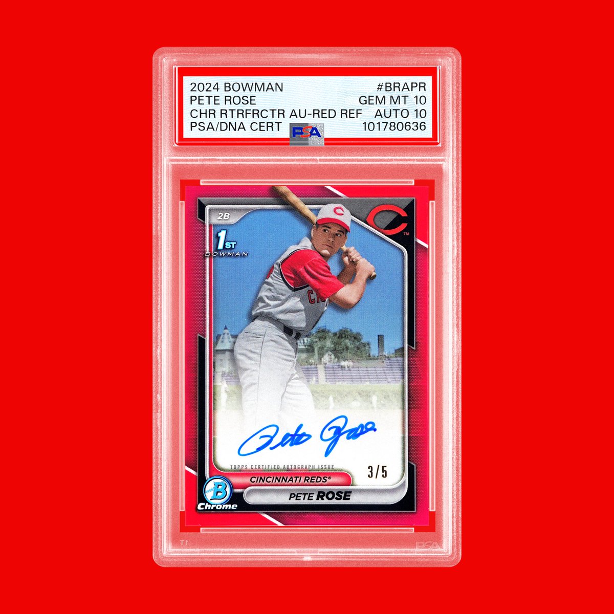 The late Hit King made a return to modern products in 2024 Bowman, and this Retrofractor Red parallel /5 of his “1st Bowman” recently left our grading room as a dual graded gem. pic.twitter.com/NrTDt8mjAI