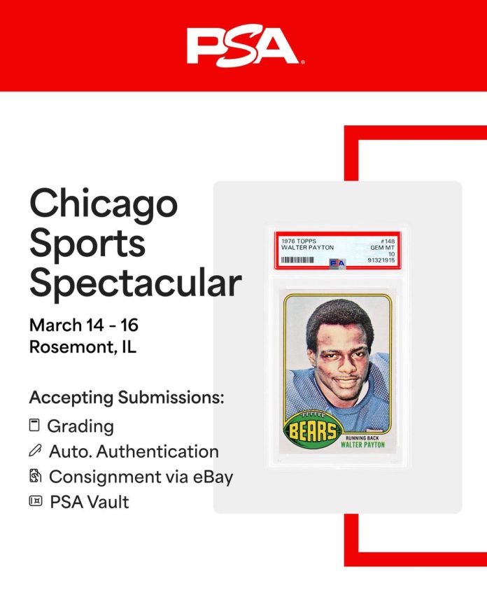 📍🤝 Visit us at the Chicago Sports Spectacular this weekend, where PSA reps will be accepting grading submissions at all service levels.