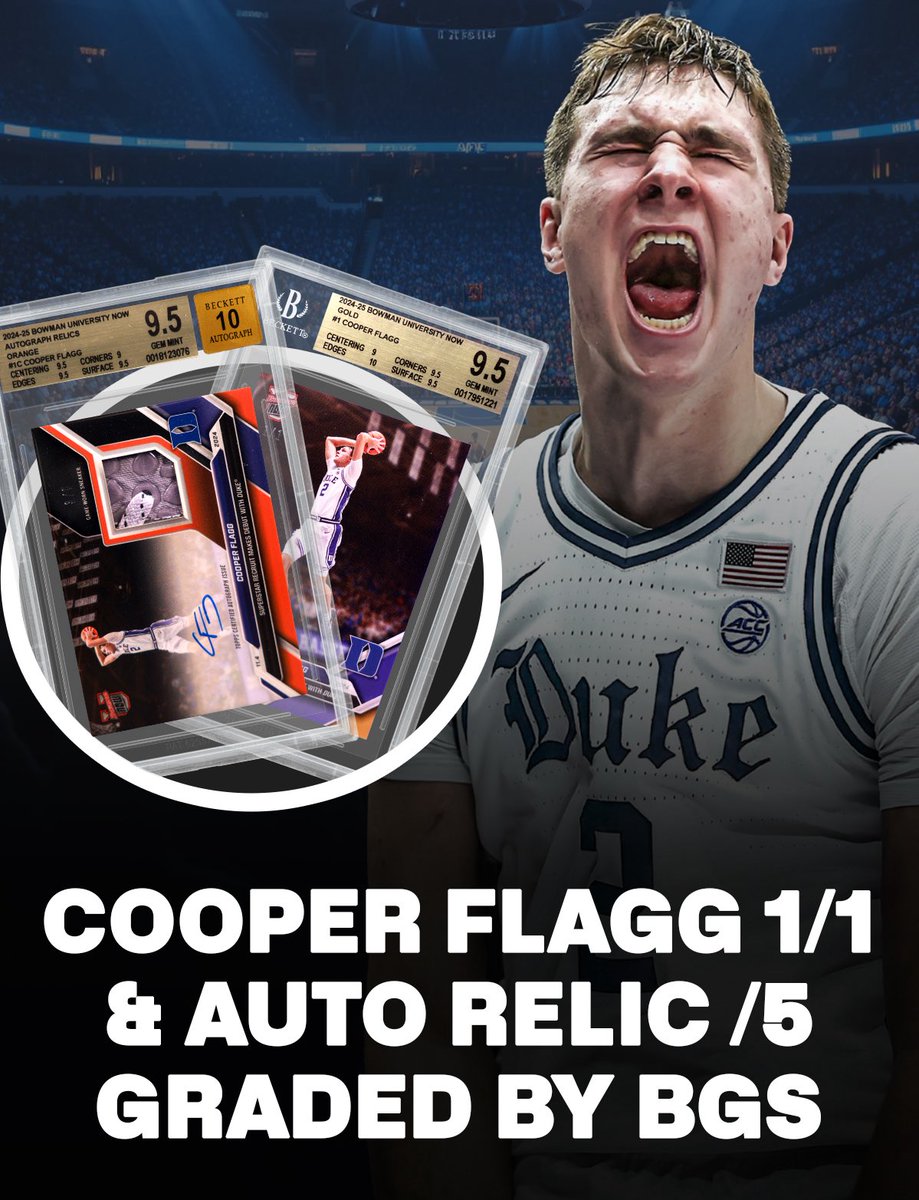 Two standout Cooper Flagg cards from the 2024-25 Bowman University NOW series: a 1/1 Gold and an Orange Autograph Relic numbered to 5. pic.twitter.com/B7Cwtr5aA1