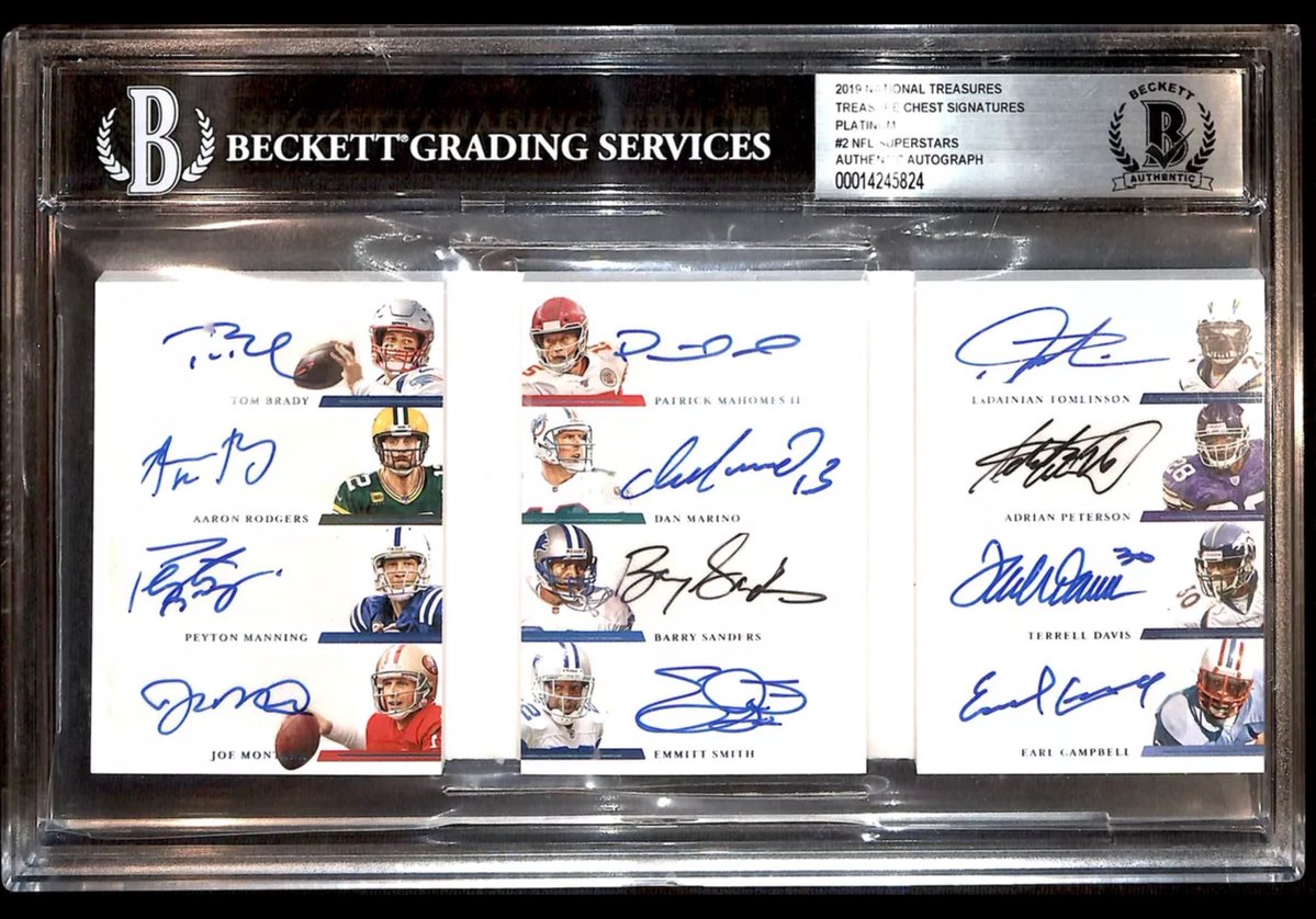Grading RT by @beckettcollect: 2019 Panini National Treasures “Treasure Chest” 12-Auto Booklet… Featuring six of the greatest QBs, and six of the greatest RBs to ever play the game! By @CardsBoulevard - July 14, 2025 0 102 FacebookTwitterPinterestWhatsApp 2019 Panini National Treasures “Treasure Chest” 12-Auto Booklet… Featuring six of the greatest QBs, and six of the greatest RBs to ever play the game!