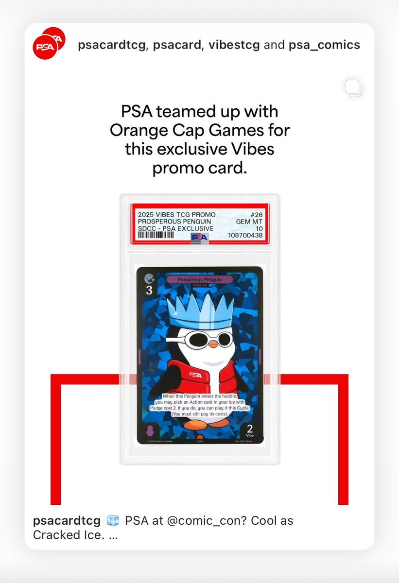 Submit any card at the PSA booth & get an exclusive graded PSA x Vibes Promo. Huge moment for Vibes & @pudgypenguins pic.twitter.com/hnNYu0MJ9e