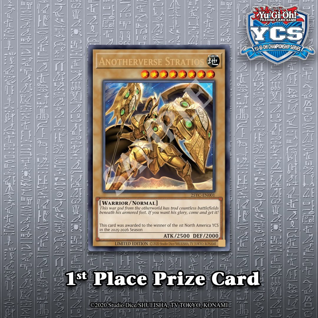 Duelists that finish 1st place in the upcoming YCS season will be awarded the new Ultra Rare Anotherverse Stratios Prize Card.