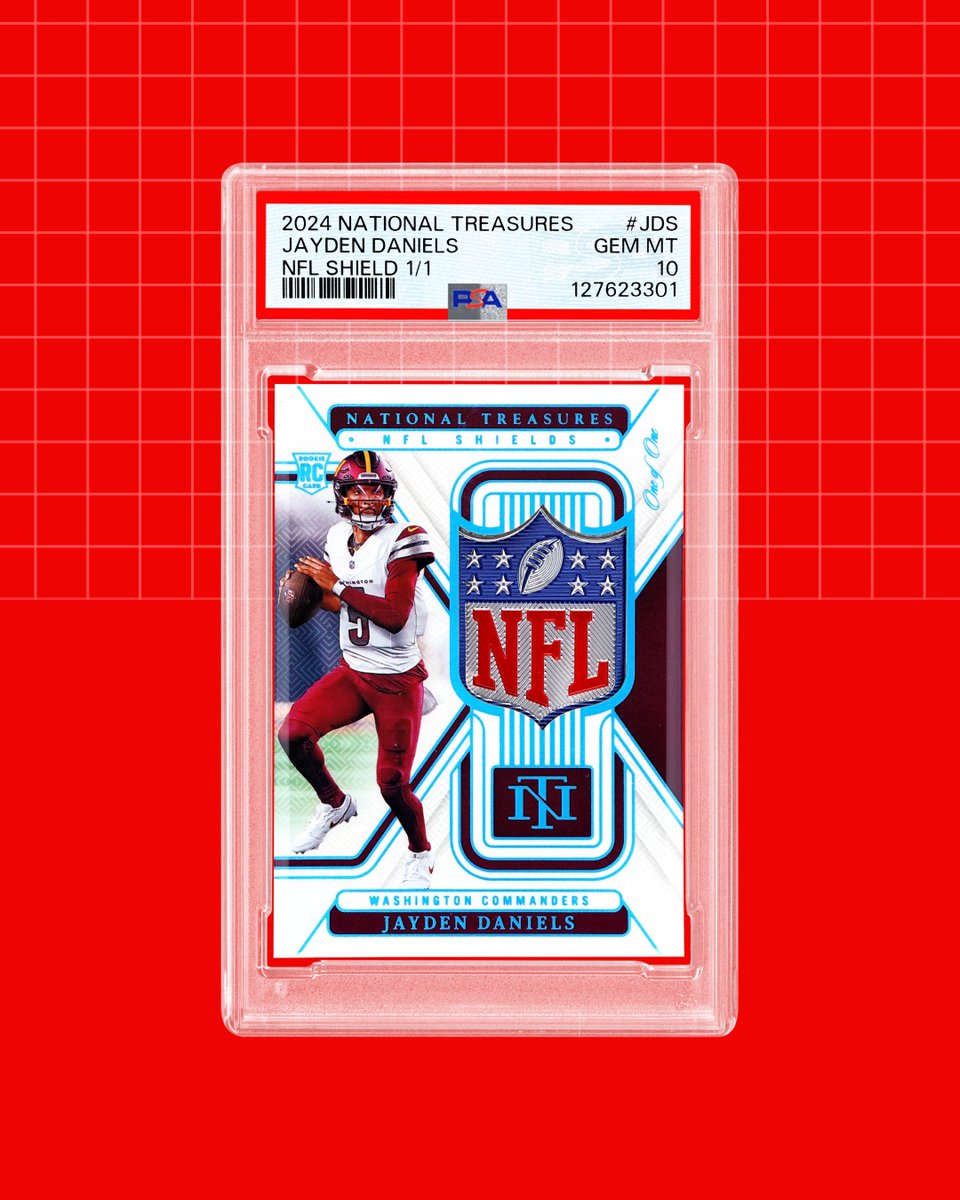 This Jayden Daniels NFL Shield from National Treasures is in full command of the collector playbook. Is there a better 1-of-1 in the game?