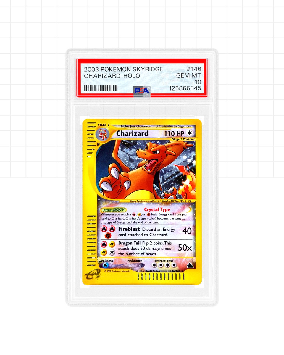 Skyridge was the final Pokémon set produced by Wizards of the Coast, and rarities like this Charizard Holo continue to crystallize its status with recent PSA 10 sales north of $25,000.