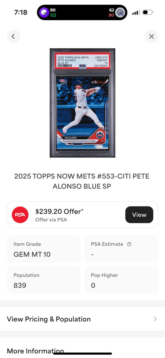 Crazy you can send it to PSA vault and sell it for $239.20. Not bad for a ballpark giveaway!