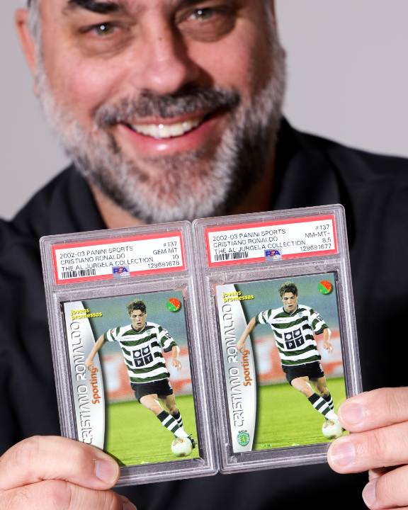 During a September livestream at PSA, Al Jurgela and his son pulled a pair of Ronaldo rookie grails from a coveted box of 2002 Panini Mega Craques.