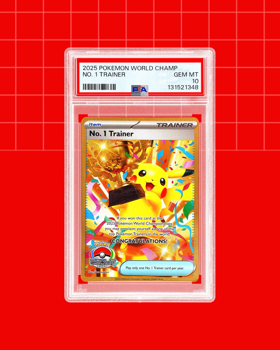Introducing the top-graded No. 1 Trainer trophy card, awarded to the champions of TCG, VGC, Pokémon Go and Unite divisions at this year’s Worlds.