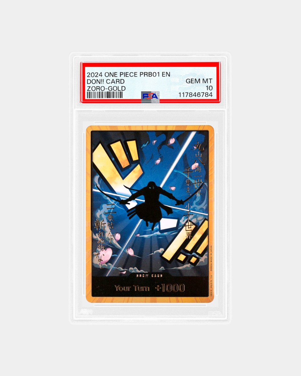 This Roronoa Zoro card depicting an intense three-sworded silhouette of the Straw Hat pirate remains a fan favorite.
