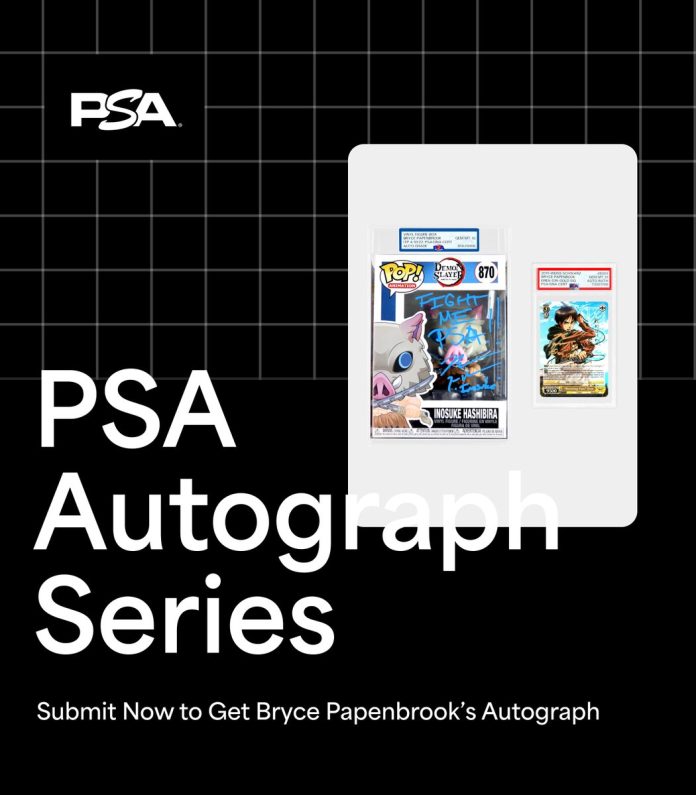 This is it: Your final call to submit items for the PSA Autograph Series featuring Bryce Papenbrook, voice of Attack on Titan’s Eren Jaeger, Demon Slayer’s Inosuke Hashibira, and Pokémon’s Red. All submissions must be received by November 7 to be eligible. Get all the details: psacard.click/Auto-Bryce-x