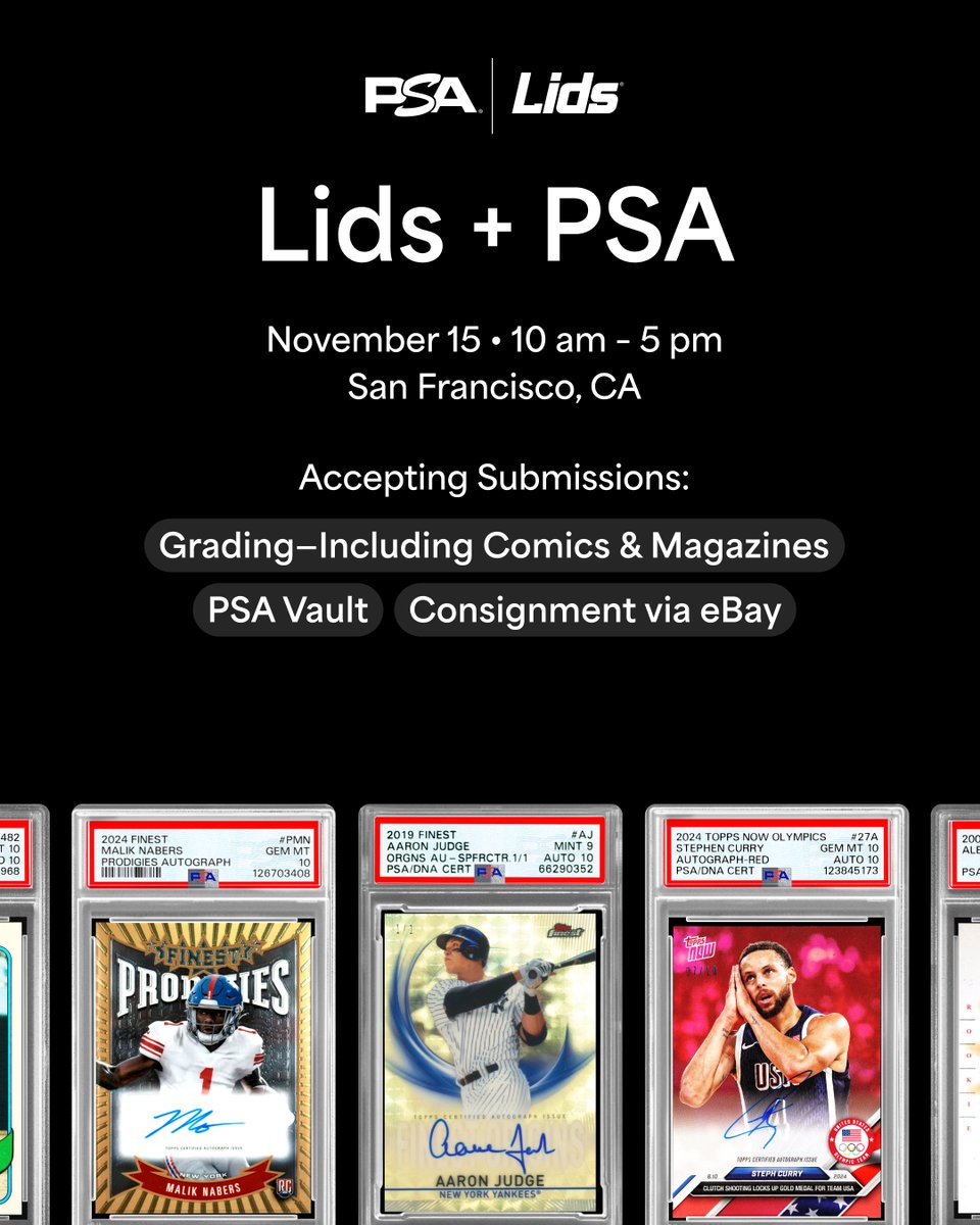 Tipping our caps to Bay Area collectors. Meet us Saturday for in-person PSA submissions—we’ll take it from here.