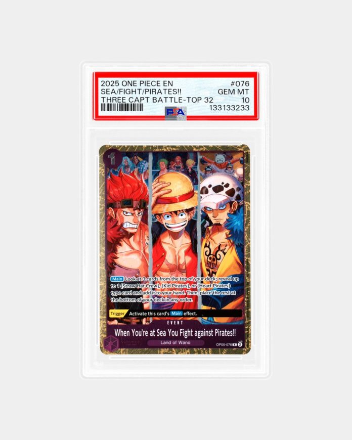 Captains unite on this Pop 1 prize card awarded to one of 32 top players from the ONE PIECE Pirates League.