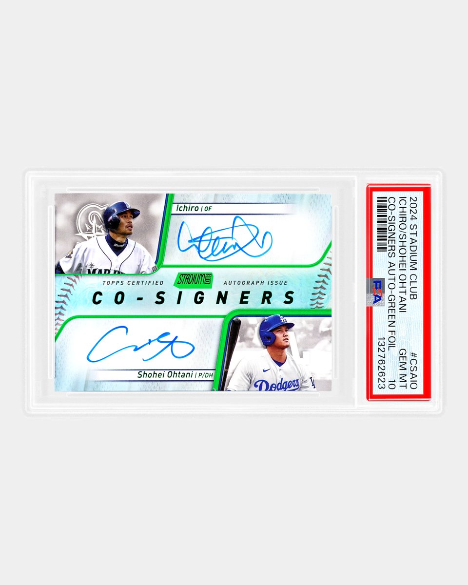 𝙅𝙐𝙎𝙏 𝙂𝙍𝘼𝘿𝙀𝘿 💎 Co-Signers Green Foil [4/5] of Ichiro and Ohtani to start your week on a PSA 10 note.