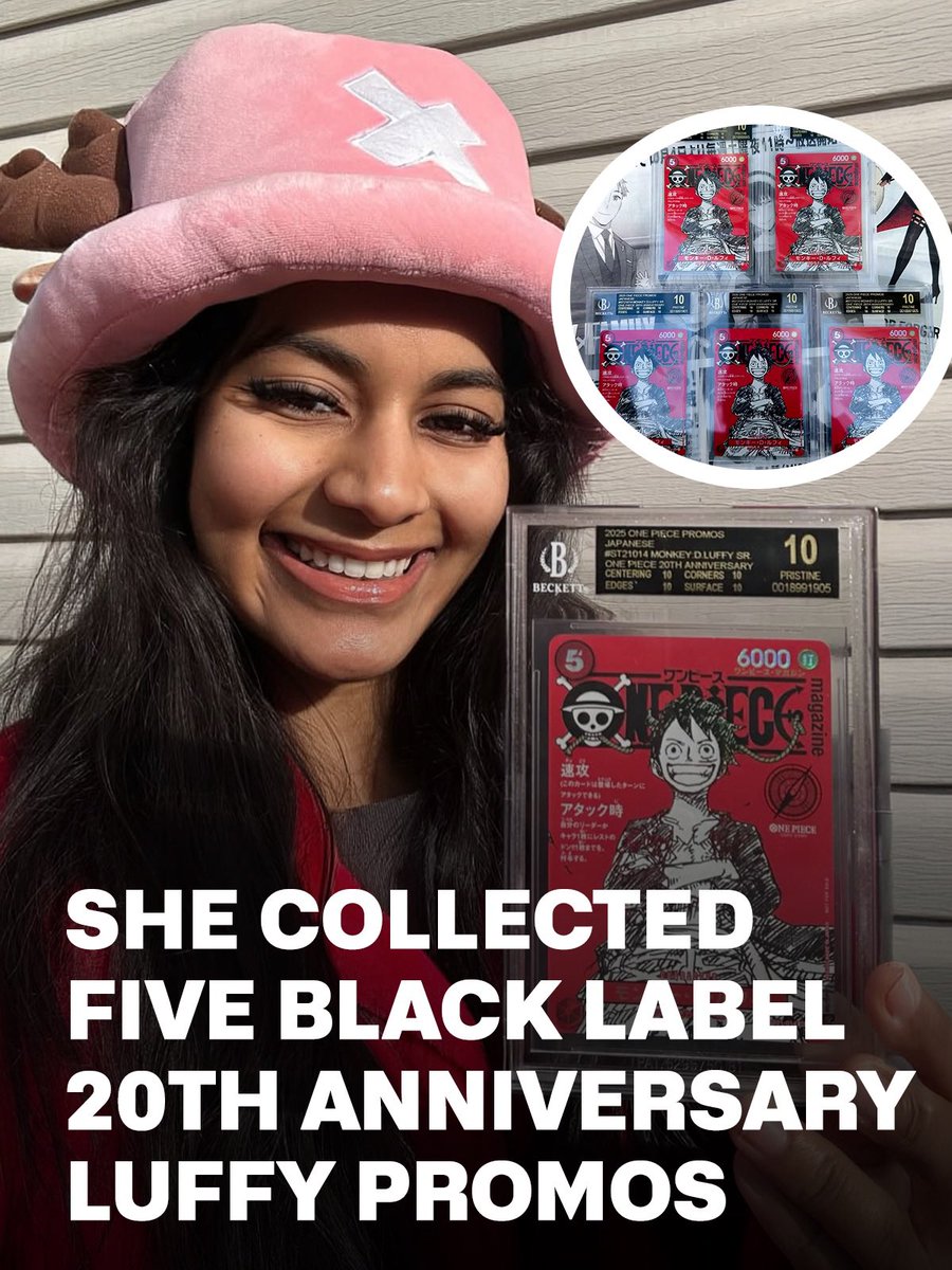 Featuring a sketch-style illustration of Luffy, the card quickly became one of the standout anniversary promos of 2025. This collector has taken it a step further, assembling five #BGSBlackLabel copies 🏴☠️