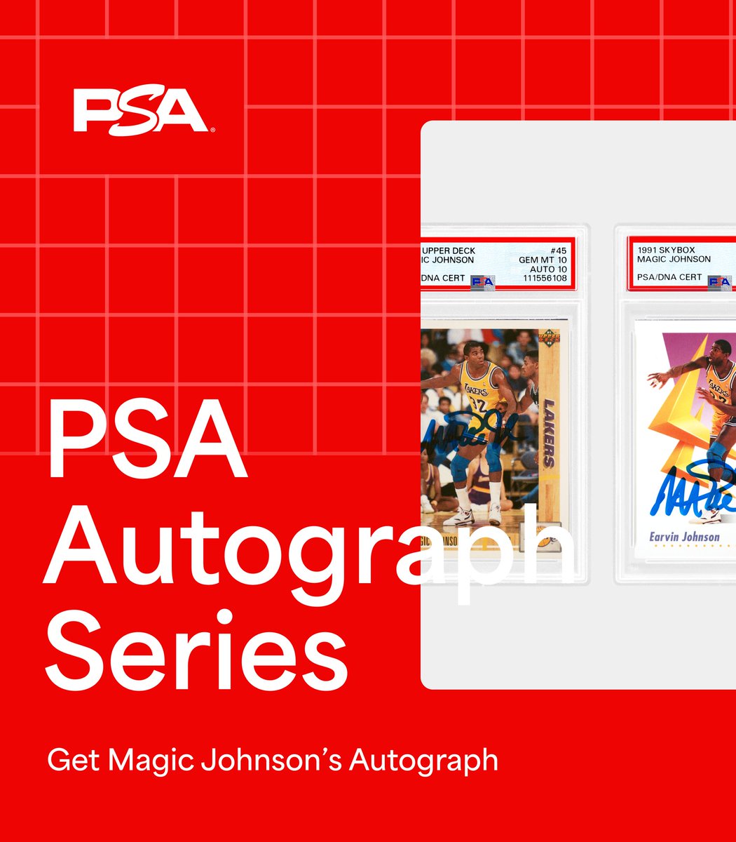 Magic Johnson 🐐For this upcoming PSA Autograph Series signing, your items will be signed by Magic and witnessed In-the-Presence™️ of PSA courtesy of Press Pass Collectibles, then authenticated and encapsulated before being shipped back to you. All submissions must be received by January 23 to be eligible. Learn more: psacard.click/Auto-Magic-x