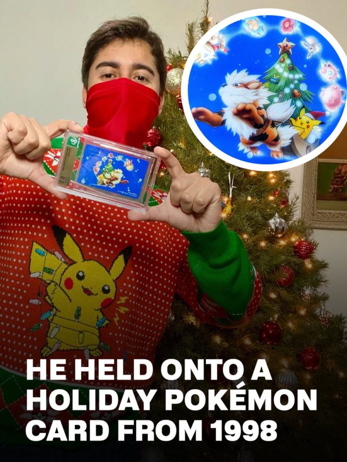 This collector preserved a 1998 Japanese Pokémon Arcanine phone card — a holiday telecom card from the payphone era, with most examples long since used and discarded.