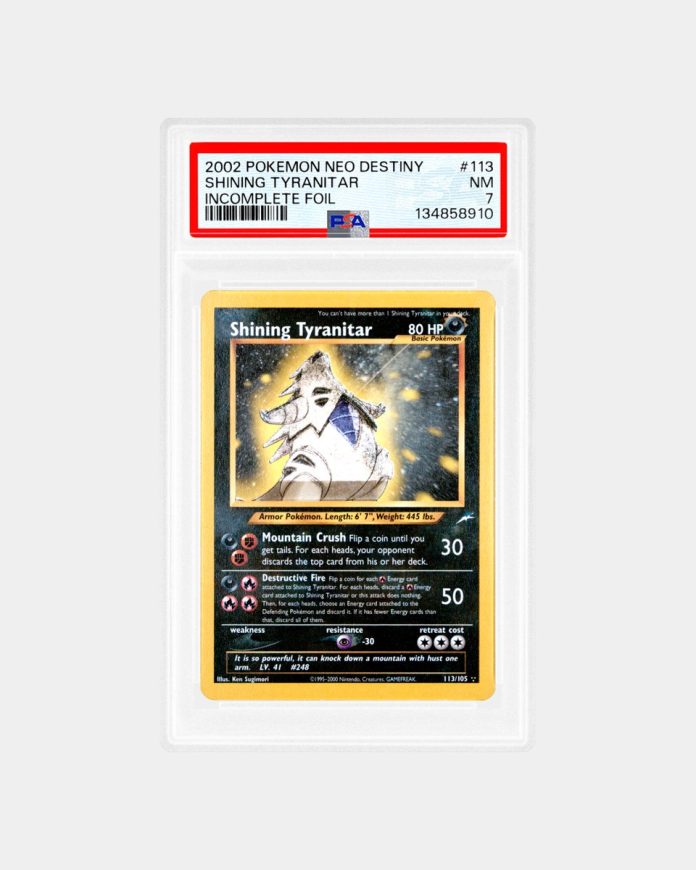 Tyranitar casts a big shadow, but the shaded area here around its knees is actually printed in error. Labeled an Incomplete Foil, the designation applies when foil is not properly applied throughout. Such error cards are… pic.twitter.com/ueYRT6uaZj