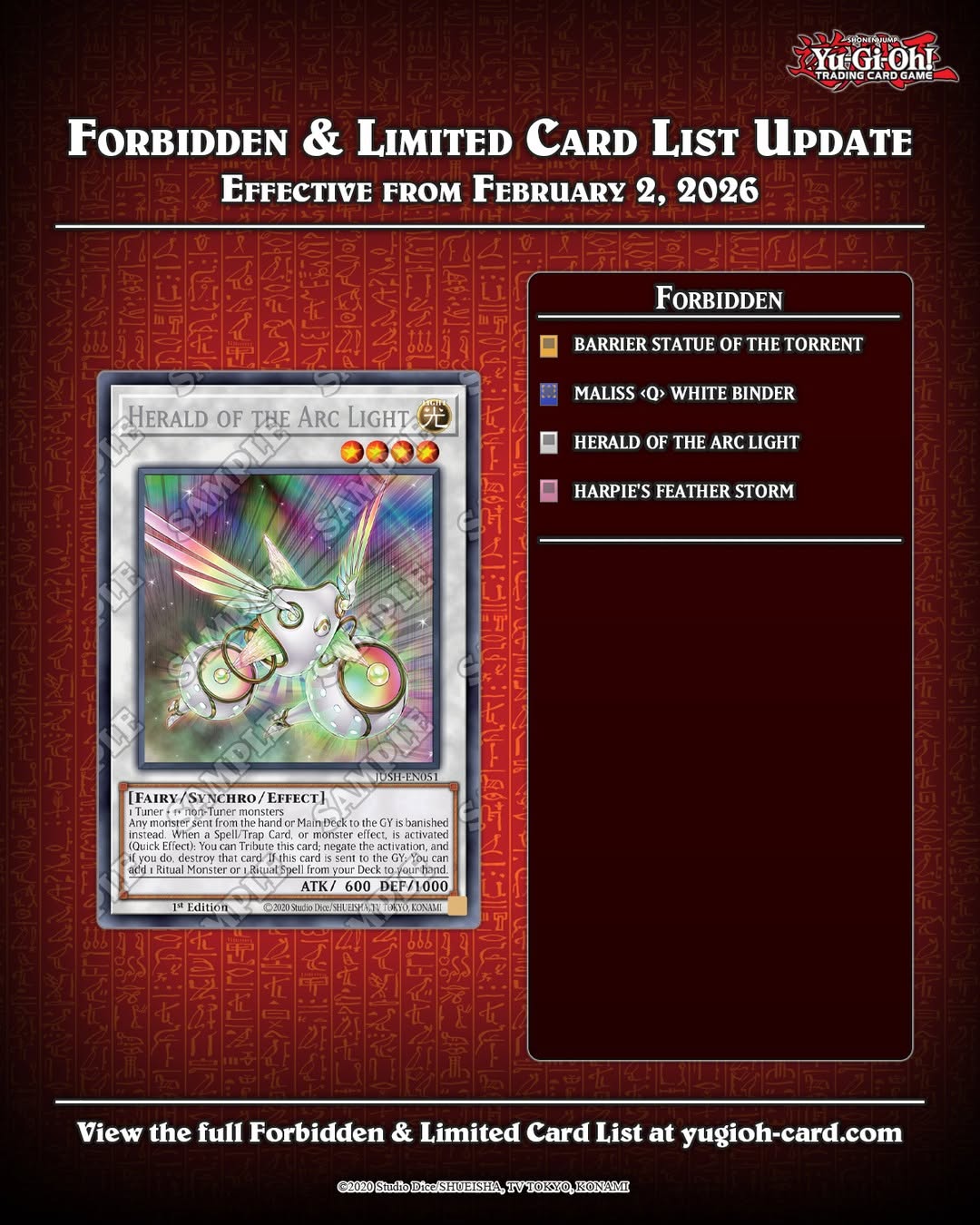 Yugioh ⚠️ Attention Duelists! ⚠️ Here are the upcoming updates to the #YuGiOhTCG Forbidden & Limited List, effective February 2… By officialyugiohtcg - January 21, 2026 0 6 FacebookTwitterPinterestWhatsApp ⚠️ Attention Duelists! ⚠️ Here are the upcoming updates to the #YuGiOhTCG Forbidden & Limited List, effective February 2, 2026.
