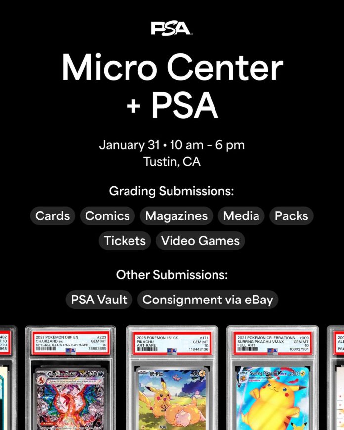 Want to submit your items directly to PSA? Don’t miss out on this upcoming drop-off event hosted by Micro Center in Tustin, where you can bring your order directly to PSA staff.