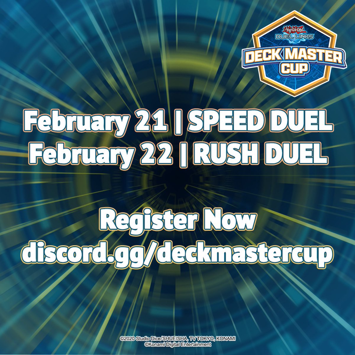 Duel in the #YuGiOhDUELLINKS Deck Master Cup tournaments on Feb. 21-22.