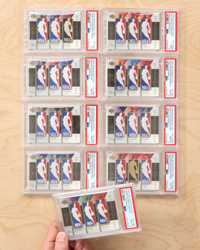 Behold one collector’s conquest of the Triple Logoman checklist from 2005 UD Exquisite Collection. Of the 10-card set, just one — the Jordan/Pippen/Rodman — is absent from this submission that left us in… pic.twitter.com/sZ7ctxQgkY