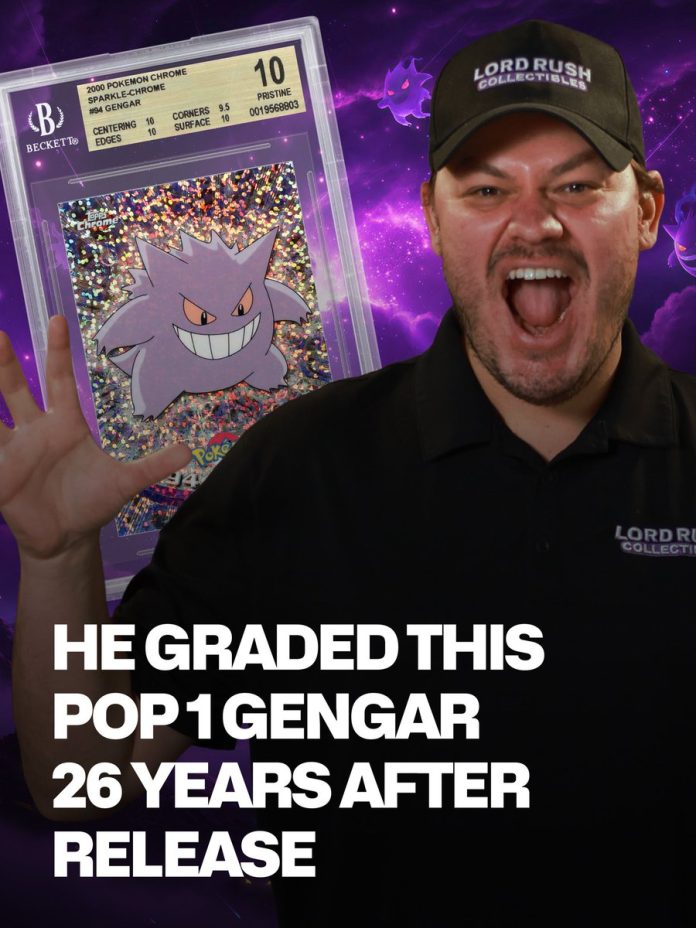 This 2000 Topps Pokémon Chrome #94 Gengar Sparkle-Chrome recently graded a BGS Pristine 10, becoming the only BGS 10 in the world more than 25 years after release.