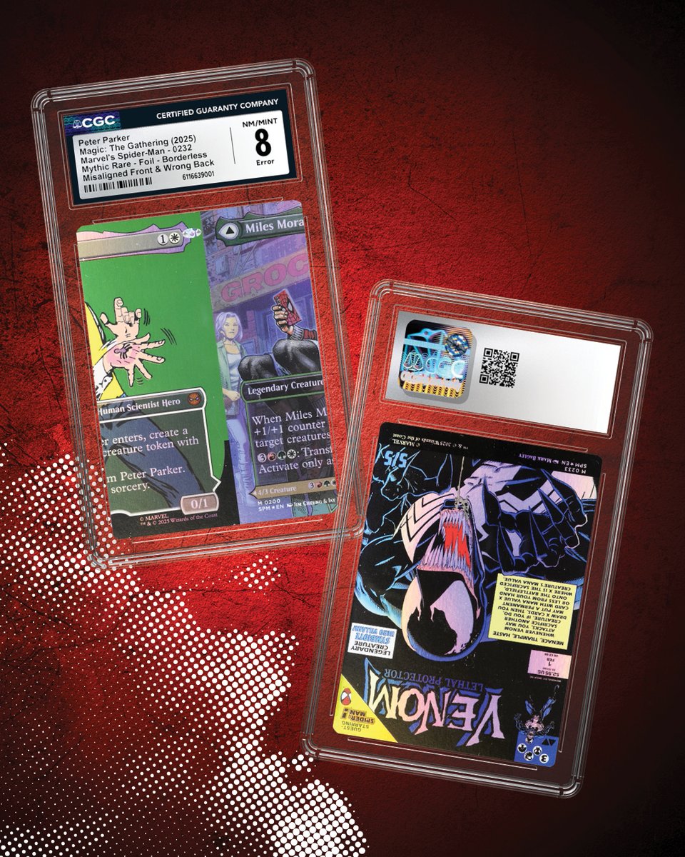 The chances of a pulling a printing error are rare, but never zero. We just graded this Peter Parker Mythic Rare Borderless Foil from the MTG Spider-Man set, featuring an upside-down Venom on the back 🙃 pic.twitter.com/lbt1cw55u2