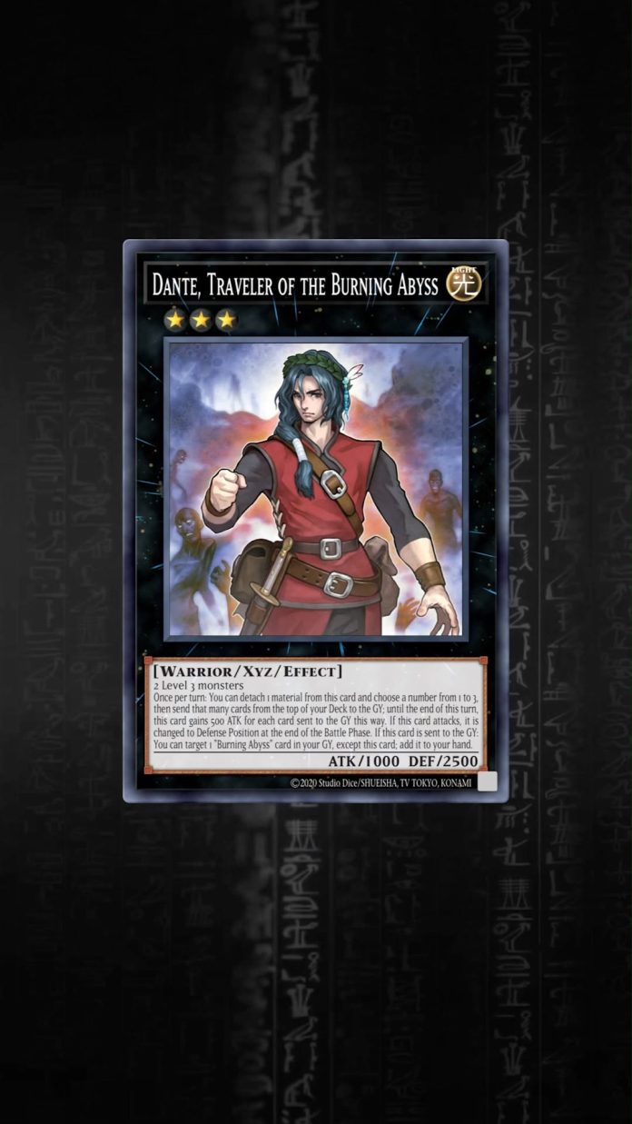 Yugioh In the #YuGiOhTCG, some cards stick with us for a very long time, and today weโre taking a look at the fan-favorite Dant… By officialyugiohtcg - April 3, 2026 0 1 FacebookTwitterPinterestWhatsApp In the #YuGiOhTCG, some cards stick with us for a very long time, and today weโre taking a look at the fan-favorite Dante, Traveler of the Burning Abyss! Watch History of the Card to learn about this cardโs lore!