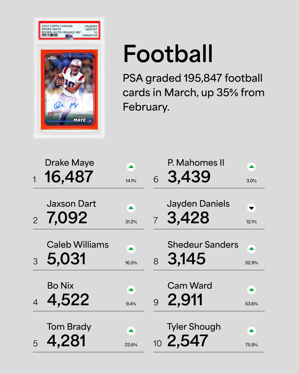 What offseason? Players reported in numbers last month, with over 195,000 football cards graded.