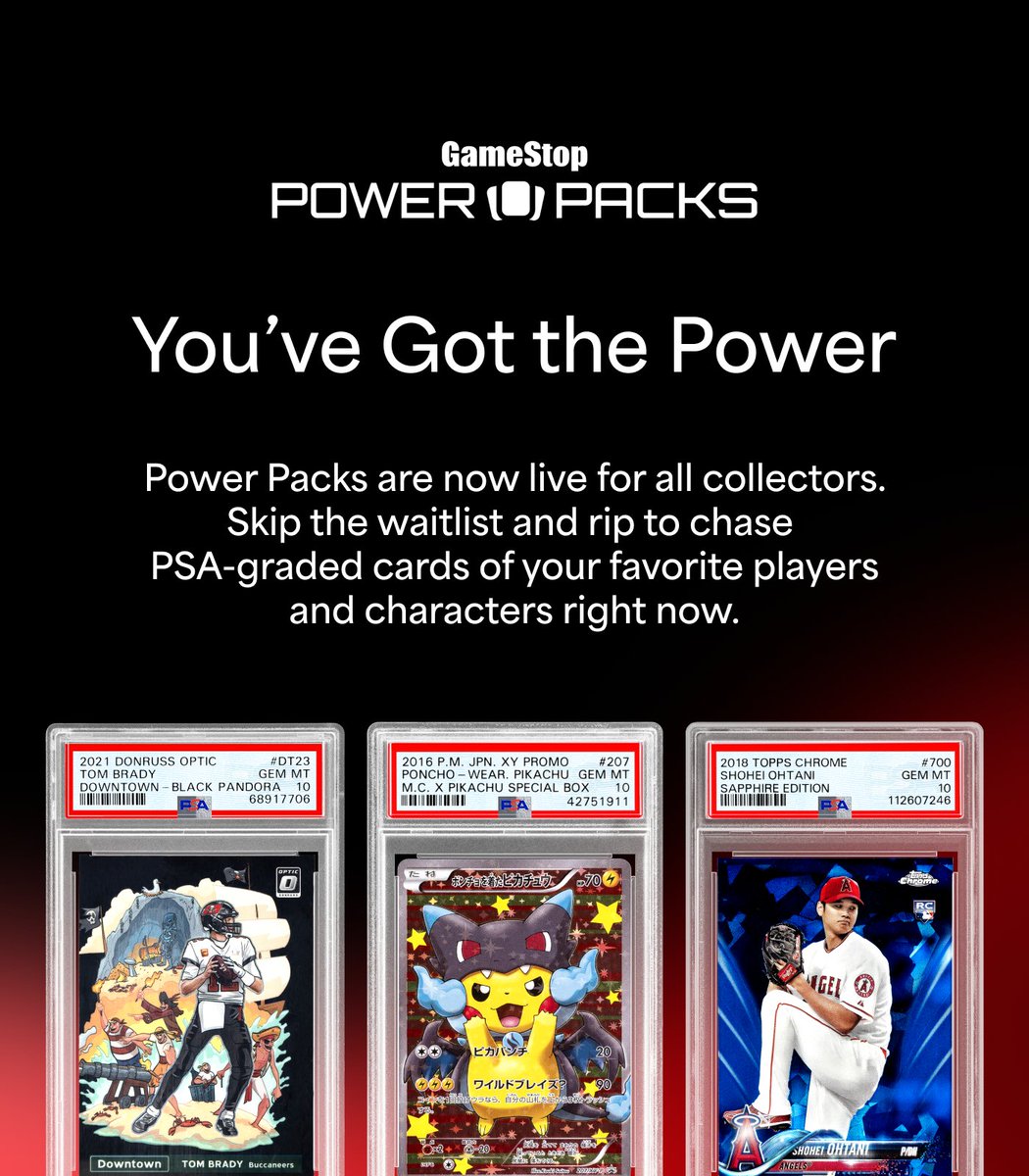 Power Packs are now live for everybody, which means you can dive in and chase your favorite sports stars and TCG characters for as little as $25? Ready to get started? Set up your GameStop account and start ripping today: https://t.co/pSbSqkBY6I pic.twitter.com/THNwgKjf1B