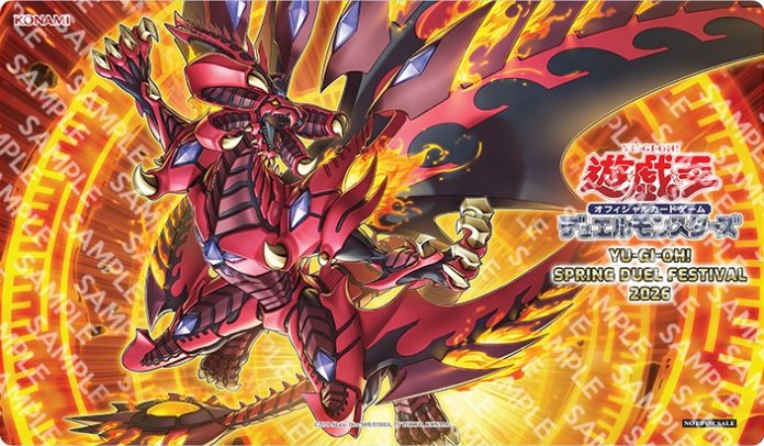 Yugioh YGOrganization | Yu-Gi-Oh! Spring Duel Festival 2026 [OCG-SC] By NeoArkadiaNeoArkadia - April 22, 2026 0 1 FacebookTwitterPinterestWhatsApp A mat worthy of Hypernova Mimighoul Dragon Sleeves Red Hypernova Dragon Playmat (Main Event) Kewl Tune Cue Playmat (Side Event) Source: Yu-Gi-Oh!