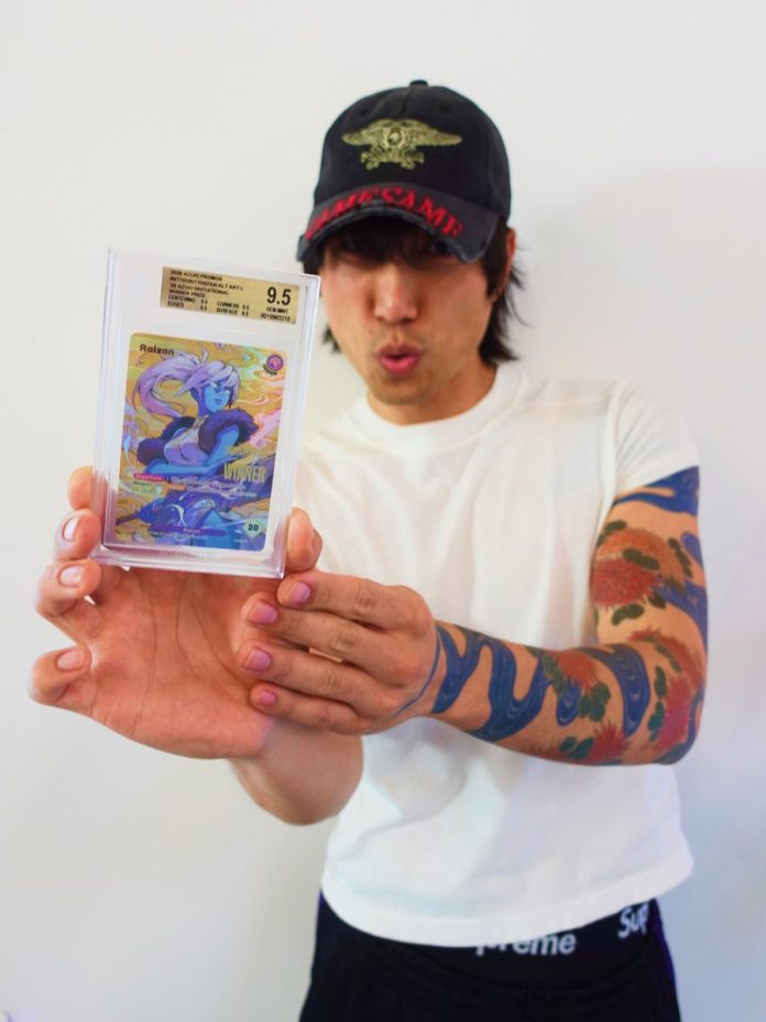It’s the Invitational Winner Prize Card, a 1-of-1 Raizan Lightning Leader alt art, awarded to the champion of the $10,000 Azuki TCG January Invitational.